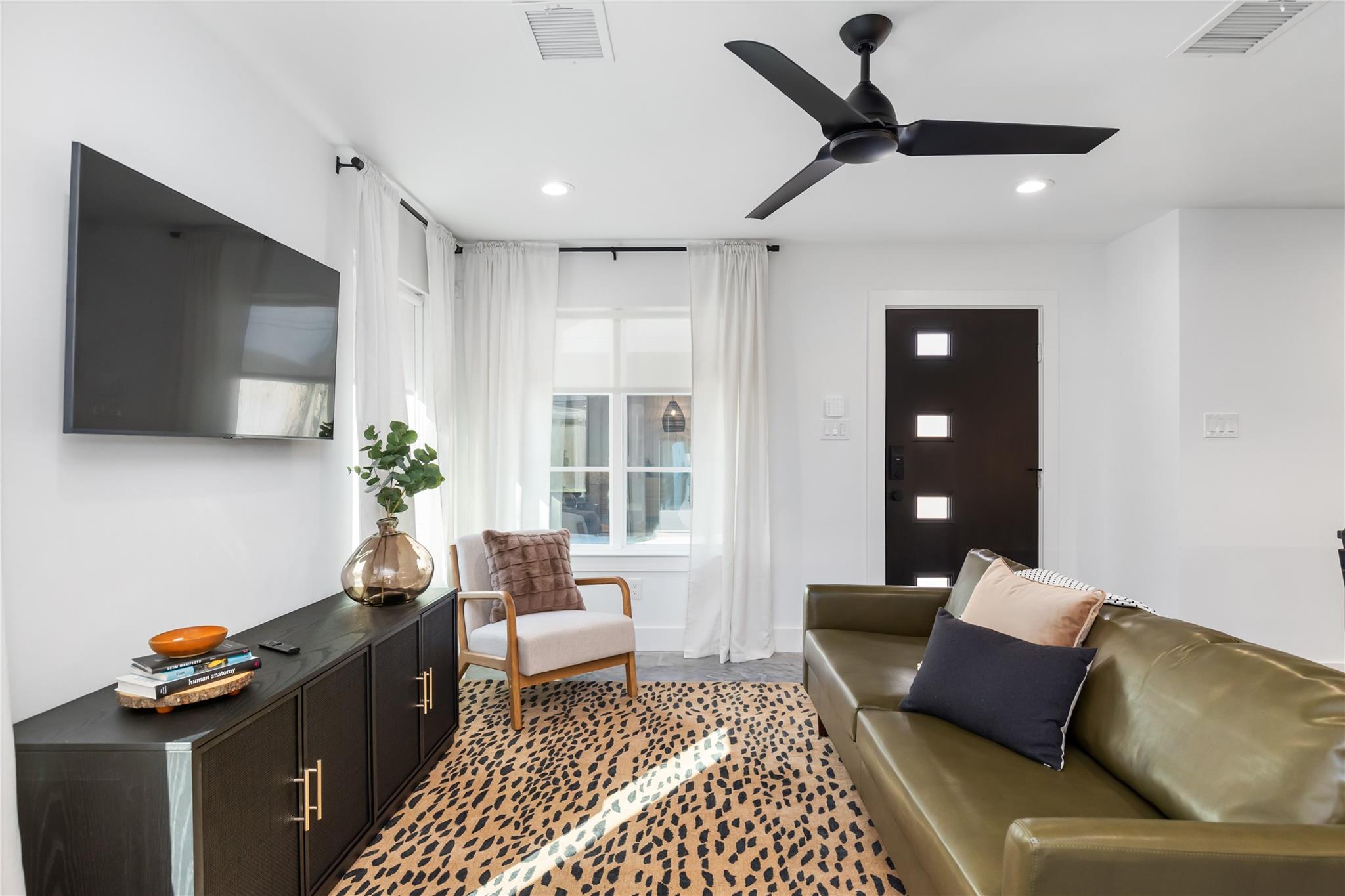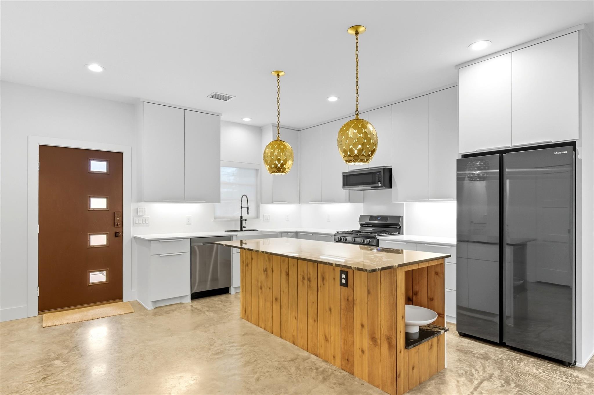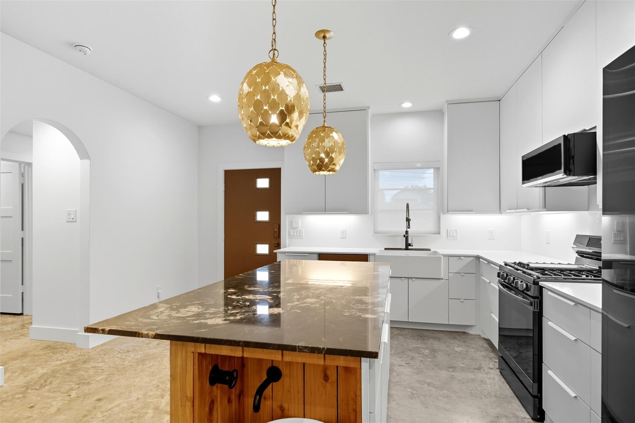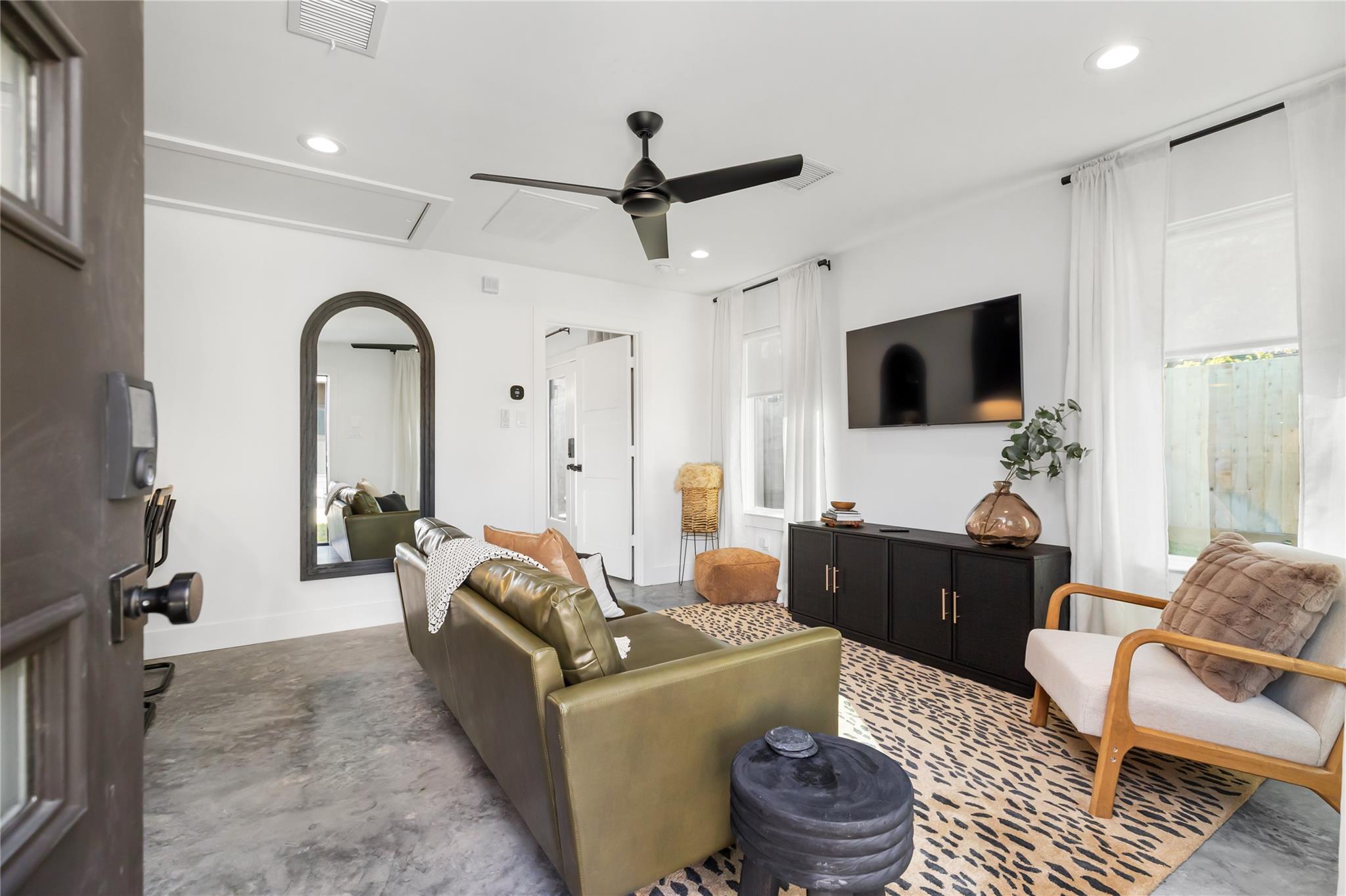 Beautifully reimagined modern Craftsman cottage with casita on a 6,000 sq. ft. lot in the vibrant neighborhood of Independence Heights. The two-bed, two-bath main home features polished concrete floors, designer light fixtures, custom window treatments, and smart-home design. Open living spaces flow seamlessly into a stylish kitchen with modern finishes. The private primary suite offers a spa-like bath, while the secondary bedroom adds flexibility. A detached one-bed, one-bath casita provides space for guests, multigenerational living, or rental income. Large fenced backyard with room to entertain or relax. Minutes from The Heights, Downtown, and major freeways, this home blends timeless character with modern living.