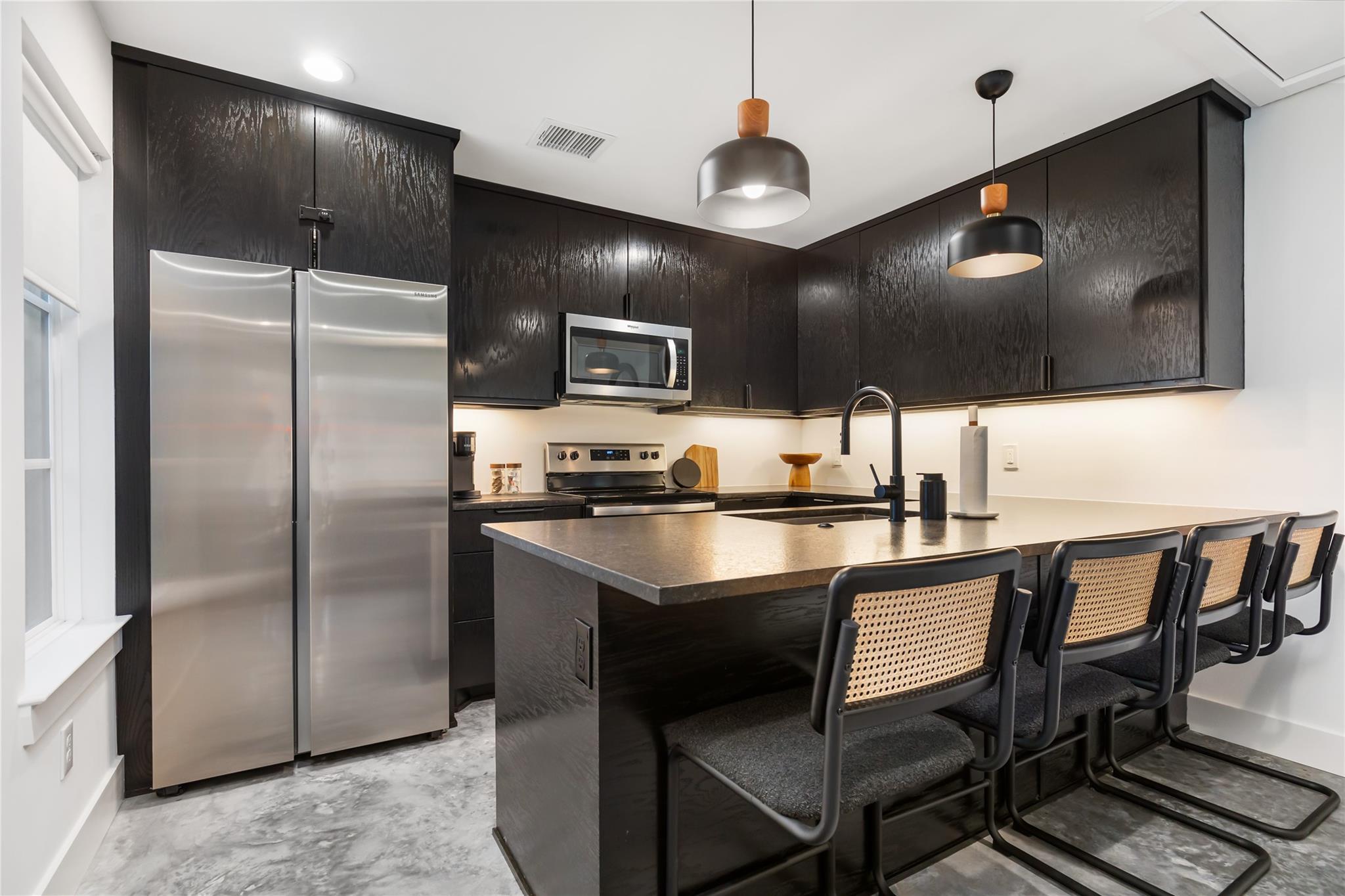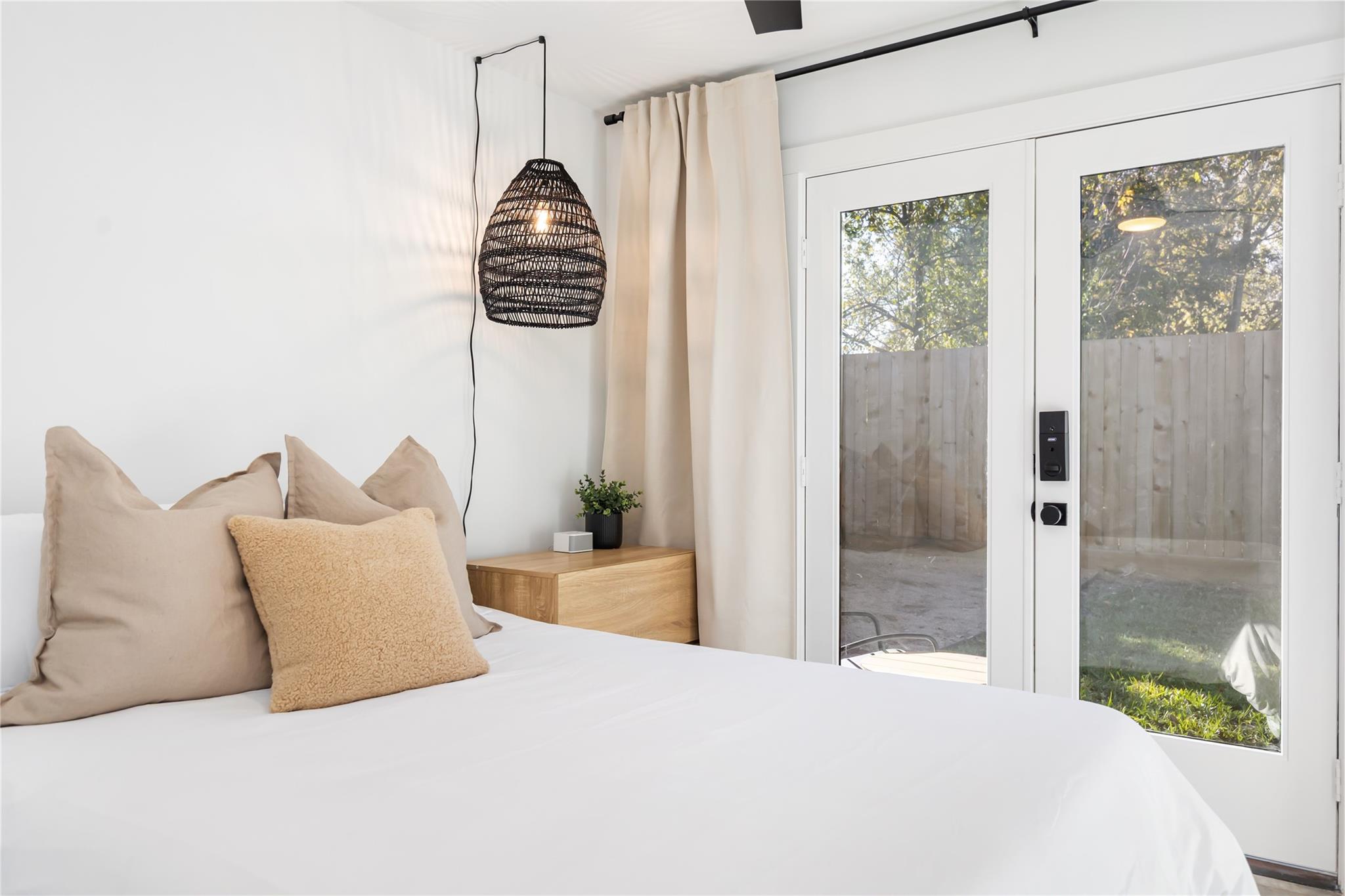 Beautifully reimagined modern Craftsman cottage with casita on a 6,000 sq. ft. lot in the vibrant neighborhood of Independence Heights. The two-bed, two-bath main home features polished concrete floors, designer light fixtures, custom window treatments, and smart-home design. Open living spaces flow seamlessly into a stylish kitchen with modern finishes. The private primary suite offers a spa-like bath, while the secondary bedroom adds flexibility. A detached one-bed, one-bath casita provides space for guests, multigenerational living, or rental income. Large fenced backyard with room to entertain or relax. Minutes from The Heights, Downtown, and major freeways, this home blends timeless character with modern living.