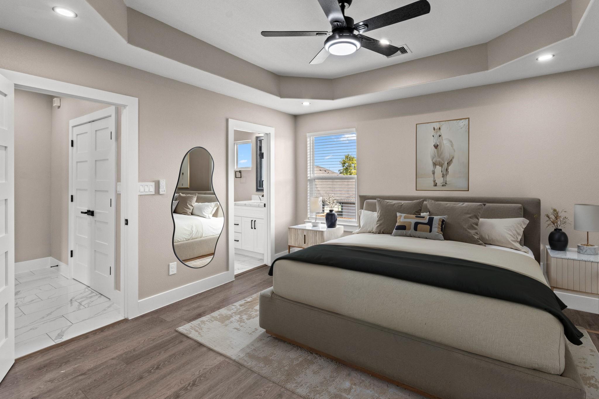 Be the first to call this stunning new construction home with two new flat screen TVs included! Experience modern living in this beautifully designed two-story duplex, just minutes from HEB, Midtown, and the Texas Medical Center. With quick access to the 610 Loop, you can reach the Galleria in 15 minutes or less--perfect for those who love convenience and city living. Step inside to find sleek contemporary finishes, a bright open-concept layout, and a stylish kitchen complete with a built-in wine rack. Each of the two primary bedrooms offers a private ensuite bathroom, creating the perfect setup for roommates or guests. Enjoy evenings in the spacious backyard--ideal for relaxing or entertaining--and rest easy with the included camera system for added security. Homes like this don't stay on the market long. Contact me or your agent today to schedule a private tour!
